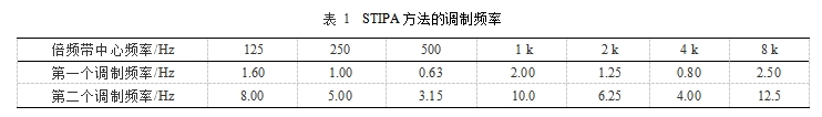 STIPA是完整STI的一种简化形式,称之为公共广播系统语音传输指数,它是基于使用较少数量的调制指数进行的测量,STIPA测试信号仅由1个测试信号组成,在7个倍频带中的每一个波段都预设两个调制如表1所示,这14个调制指数是同时产生的 香蕉视频在线,一次测量时间仅需15~25s,比完整STI要短得多,是直接方法的主要应用途径,调制指数也可以使用间接法得出,称为STIPA(IR)。