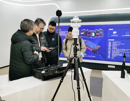 毛玉如副站长一行首先参观了公司户外试验区噪声源追踪,定位 香蕉视频在线,识别系统,测试人员现场演示了噪声定位,鸟叫虫鸣识别等公司研发的最新科技产品,熊明华总经理介绍了公司参与全国“宁静小区”建设试点工程的实际成效和经验。