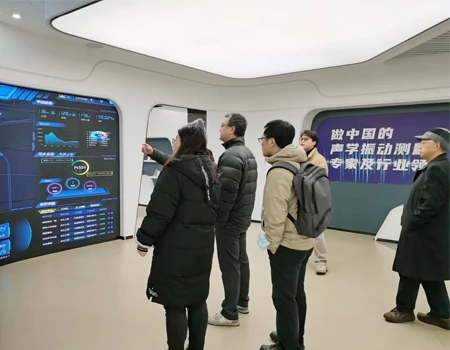 在公司展厅,领导一行参观了香蕉视频的发展史和产品陈列墙 香蕉视频高清,详细了解了公司测量电容传声器的生产情况,以及新款的AWA6292多功能声级计销售状况。